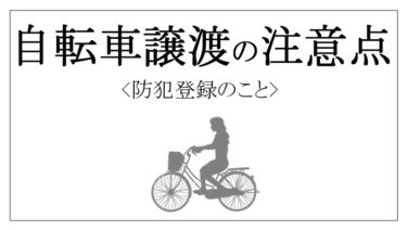 リスク回避・法務自転車を譲る・譲り受けた場合に注意する「防犯登録」のこと 本記事は、特に、フリマサイトなどで自転車を譲る・譲り受ける場合の「防犯登録」についてまとめています。最悪犯罪にまきこまれたりする可能性もあるので、正しい知識を持っておきましょう。 2022.03.09リスク回避・法務